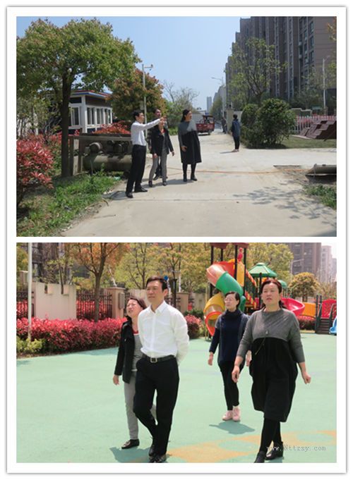 2019年4月17日上午,区教育体育局局长张进荣来到我园,在副园长季鹏程、金丽的陪同下,对幼儿园新建教学楼基建项目进行了安全检查。