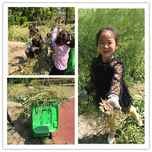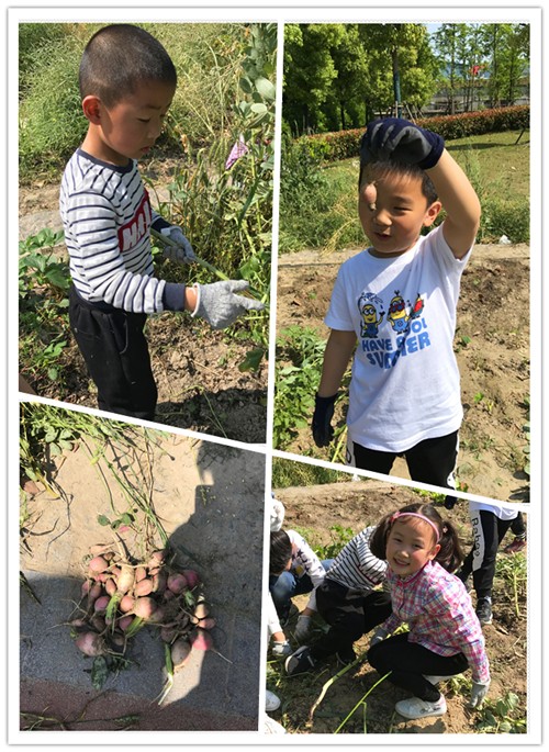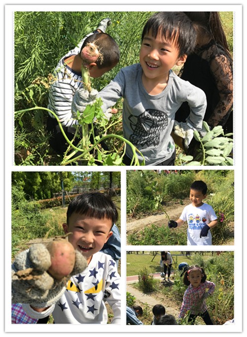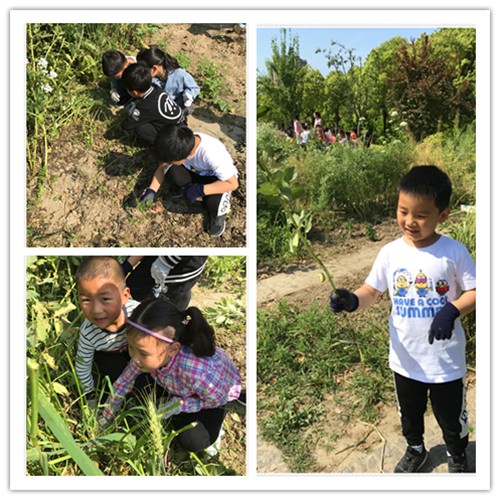 炎炎夏日,种植园里硕果累累。看到自己的努力播种有了回报,孩子们显得格外高兴。瞧,在老师的带领下,他们一个个有模有样快乐地收蚕豆、拔萝卜,别提多兴奋。
