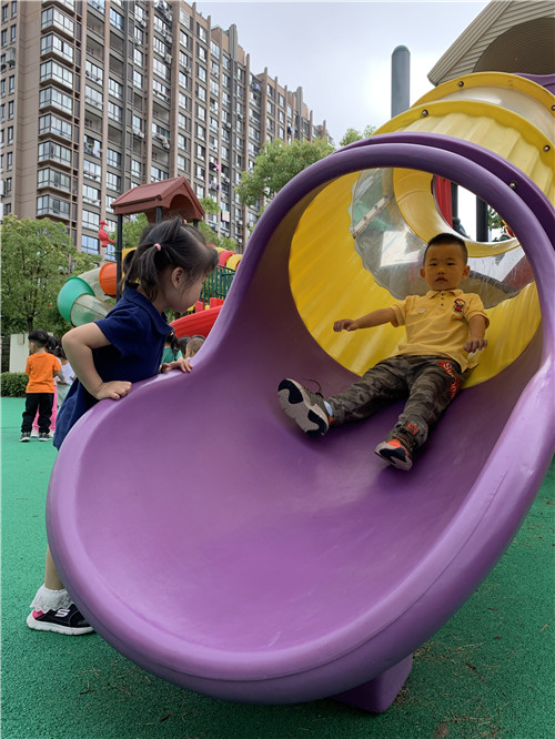但是孩子们很快就被幼儿园好玩的玩具吸引住了,瞧!他们玩得多开心啊!