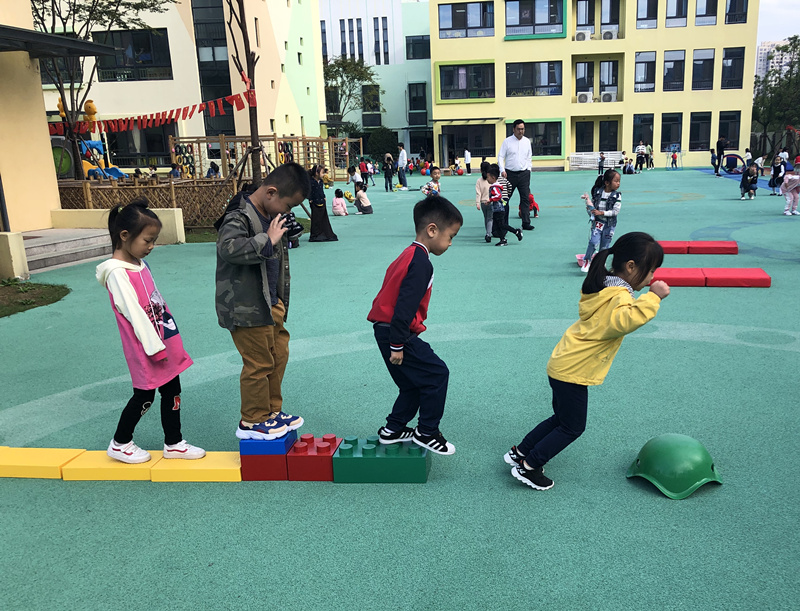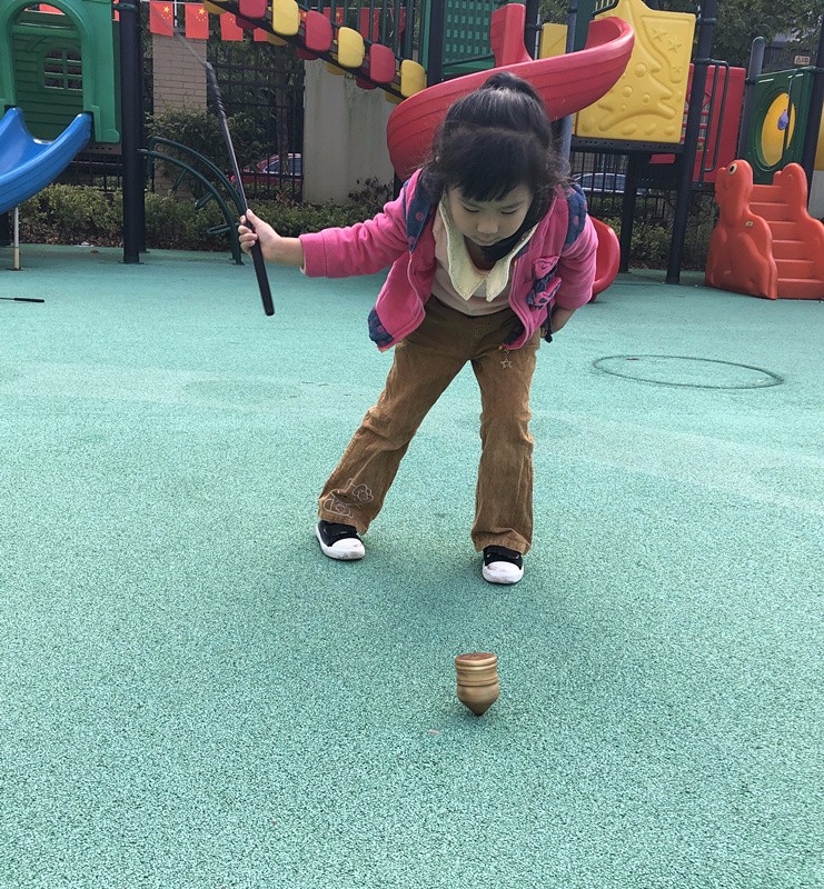 每天早晨,小朋友们都会选择自己喜欢的锻炼方式,开始锻炼身体啦!瞧!他们有的在走独木桥,有的在抽陀螺,还有的滚铁环,张张小脸上洋溢着快乐的笑容。