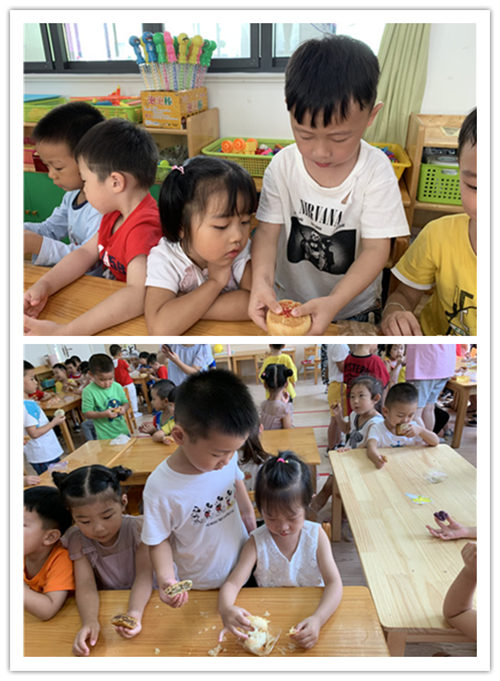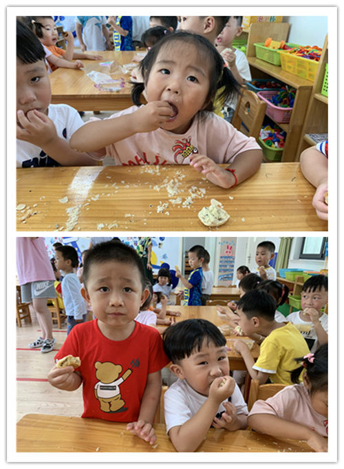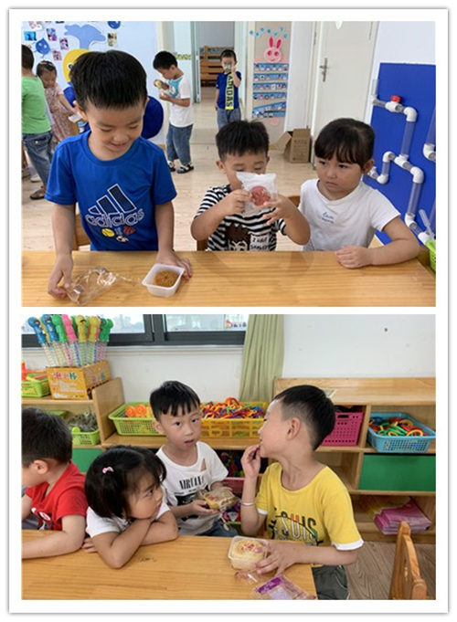 原来中班的哥哥姐姐来和我们一起分享月饼啦!大家一起吃月饼,好像更美味了呢。