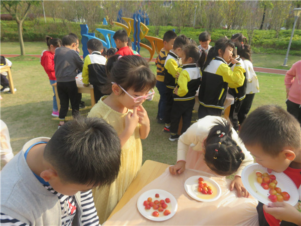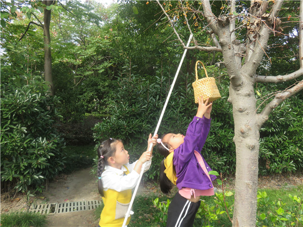 又到了每年海棠果成熟的时候,海棠节就到啦!我们拿着各种自制的工具,到嬉乐园里去采摘海棠果,海棠树太高了,我们互相合作,摘了一大篮子呢!清洗完之后,我们把海棠果拼成各种图案,再把冰糖熬的糖浆浇上去,又好吃又好玩!