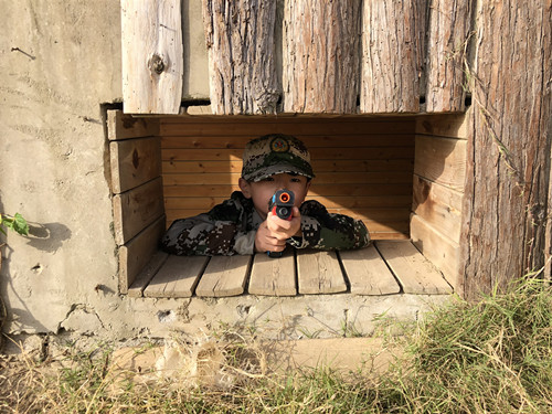 秋天悄悄地来到啦!最近天气晴朗,万里无云,温度非常适宜户外活动,我们小朋友开开心心地去嬉乐园里,来到了超级战壕。瞧他们一个个都穿上了迷彩服,就像一个个小战士!