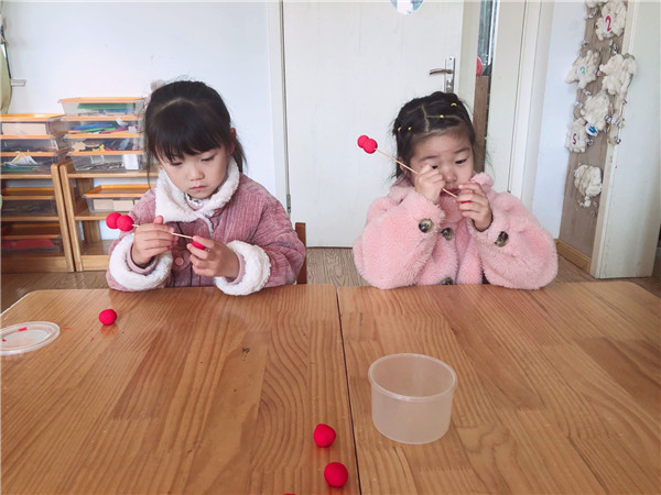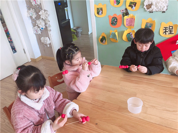 欢欢喜喜元旦到,红红火火迎新年。瞧,我们的小朋友正在做美味的冰糖葫芦装饰教室呢!一双双灵巧的小手上下翻飞,揉、搓、捏、串,一串串美味的糖葫芦就做好啦!