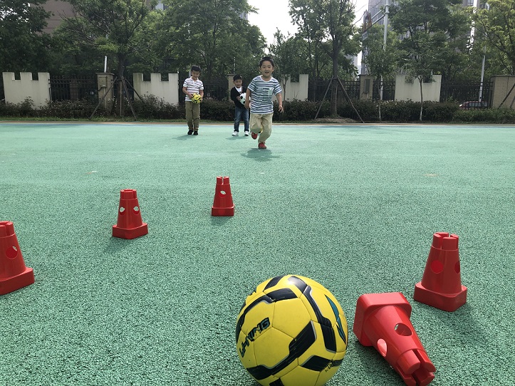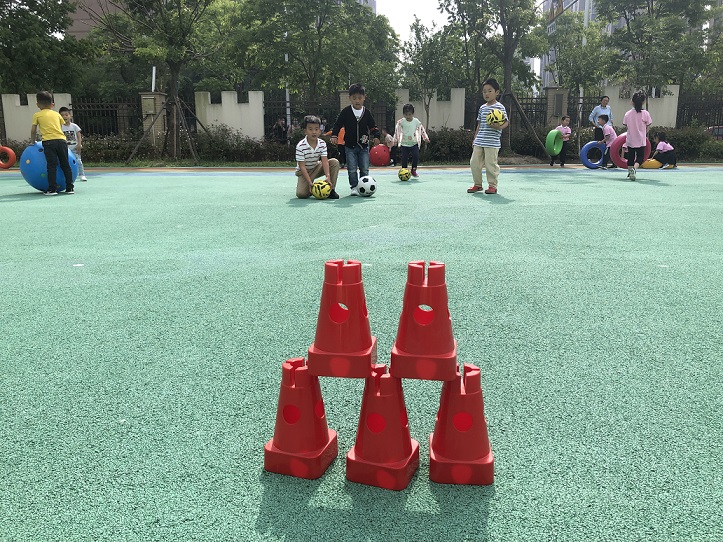 足球运动是一种全身发展性的体育活动,幼儿经常开展一些以游戏为主的足球运动,不仅能锻炼身体,还能促进孩子的个性发展与完善,在运动中学会沟通与交流,理解与包容,懂得团结和集体协作的力量。