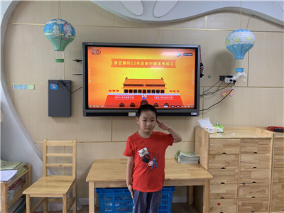 为了响应党的号召,跟紧党建的步伐,小朋友们观看了红军长征的故事,知道了红军叔叔历经艰险才完成长征,最终创立了新中国。飞夺泸定桥,翻越大雪山,红军叔叔坚韧不拔,英勇顽强的精神让小朋友们肃然起敬,纷纷伸出坚定的小手向他们致敬。