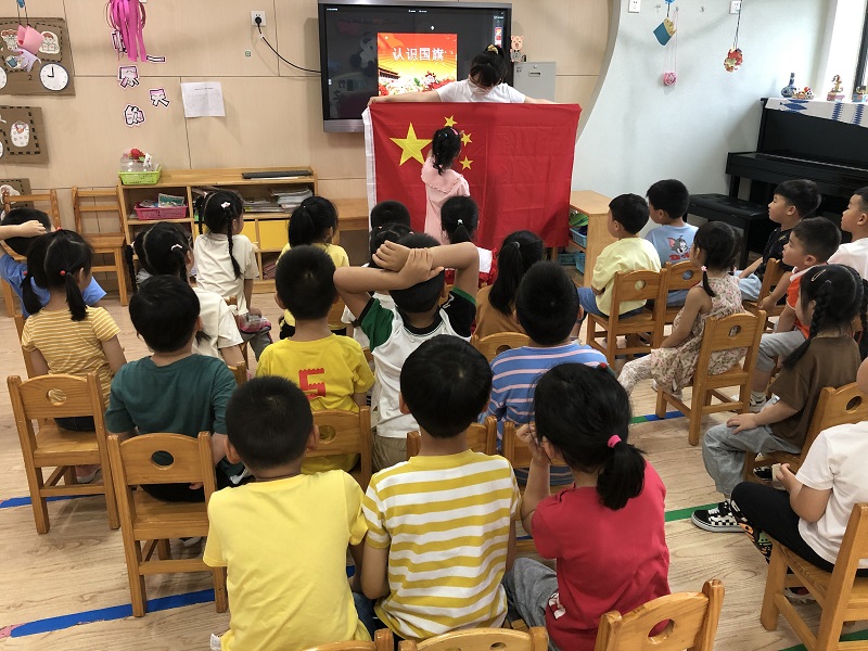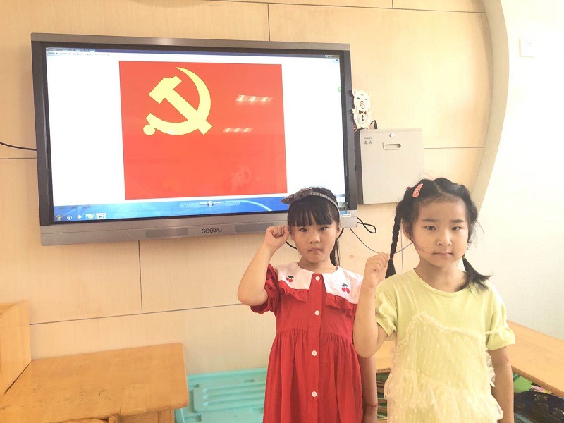 为了萌发孩子们的爱国情感,感受共产党人的浩然正气,老师为孩子们介绍了“七一建党节”的由来以及党旗、国旗的含义,让孩子们为自己身为中国人感到骄傲和自豪。